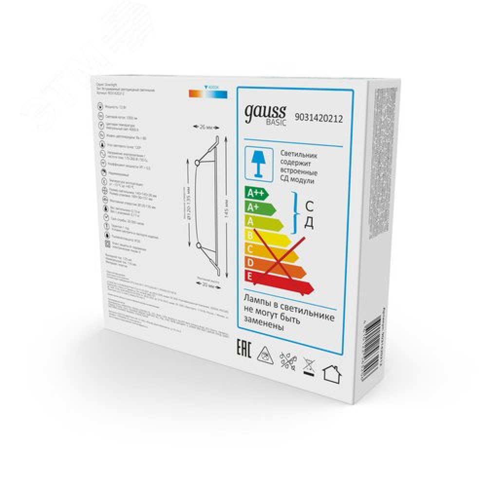 | Класс защитыII | Класс энергоэффективностиA++, A+, A (LED) | Количество ламп1 |