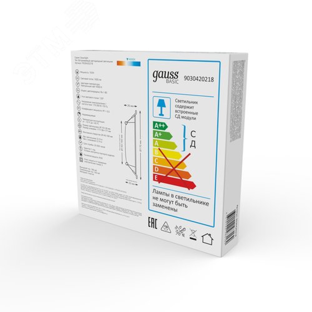 | Класс защитыII | Класс энергоэффективностиA++, A+, A (LED) | Количество ламп1 |