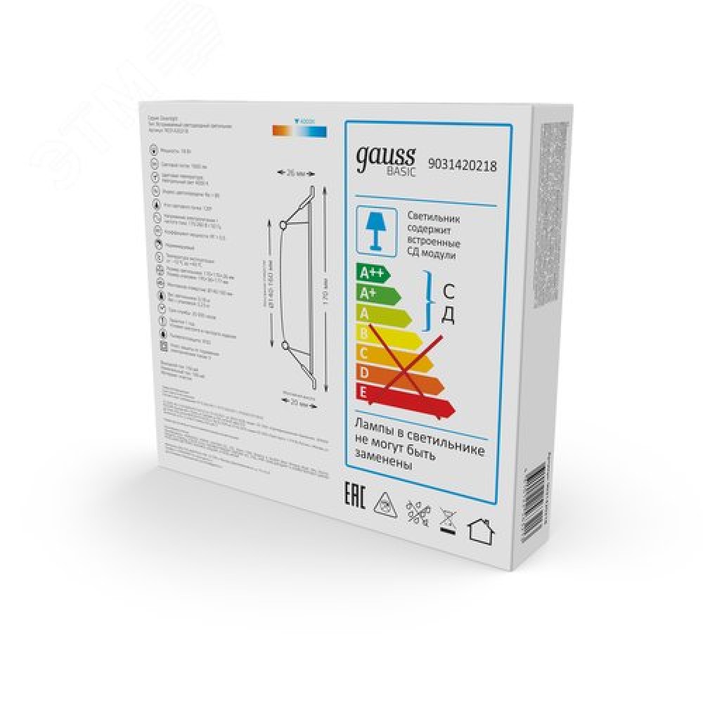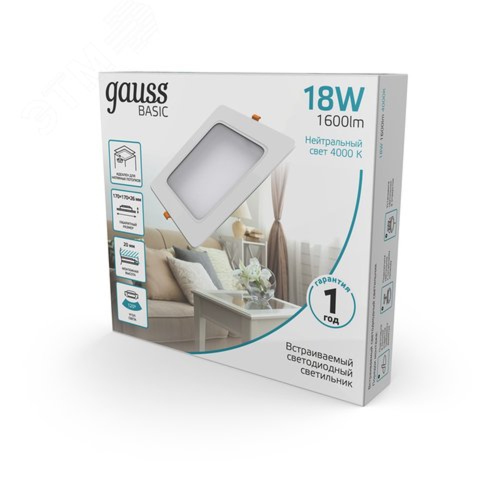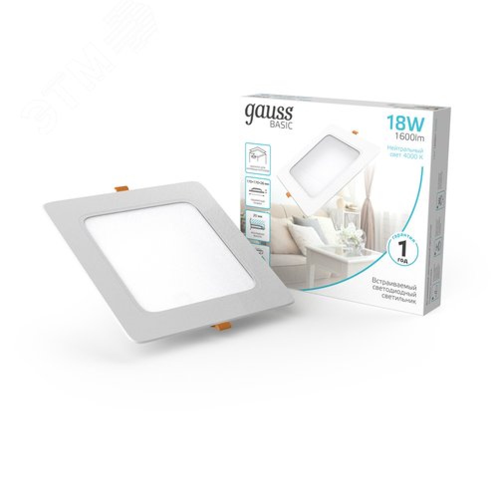 Технические характеристики Светильник светодиодный ДВО 18 Вт 1600 лм 4000К AC 220В IP20 квадрат 170х170х26мм монт разм 140х140мм Пластик Basic