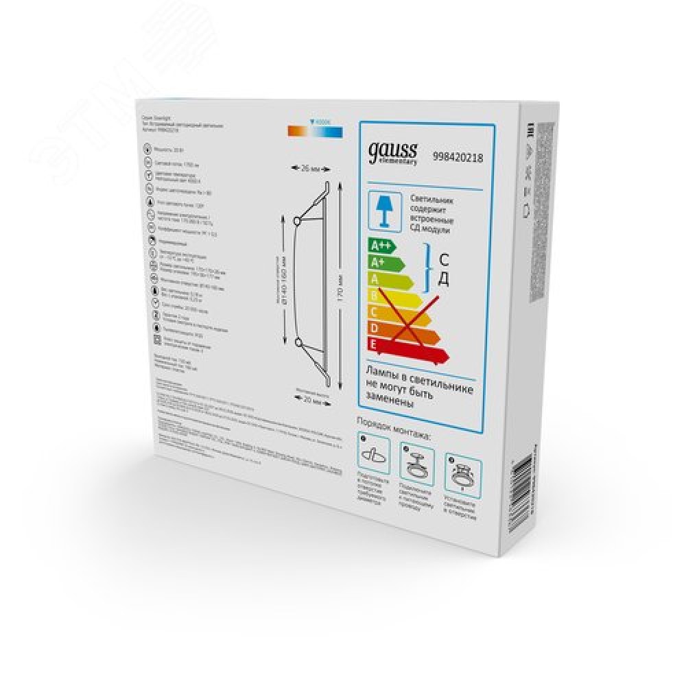 Класс защитыII Класс энергоэффективностиA++, A+, A (LED) Количество ламп1
