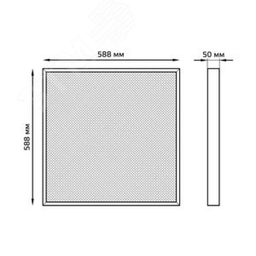 Технические характеристики Светильник светодиодный ДВО 30 Вт 3700 лм 4000К AC 220В IP40 588х588х50мм призма для потолков Грильято (планки крепления в комплекте) CRI>80Ra MiR Gauss