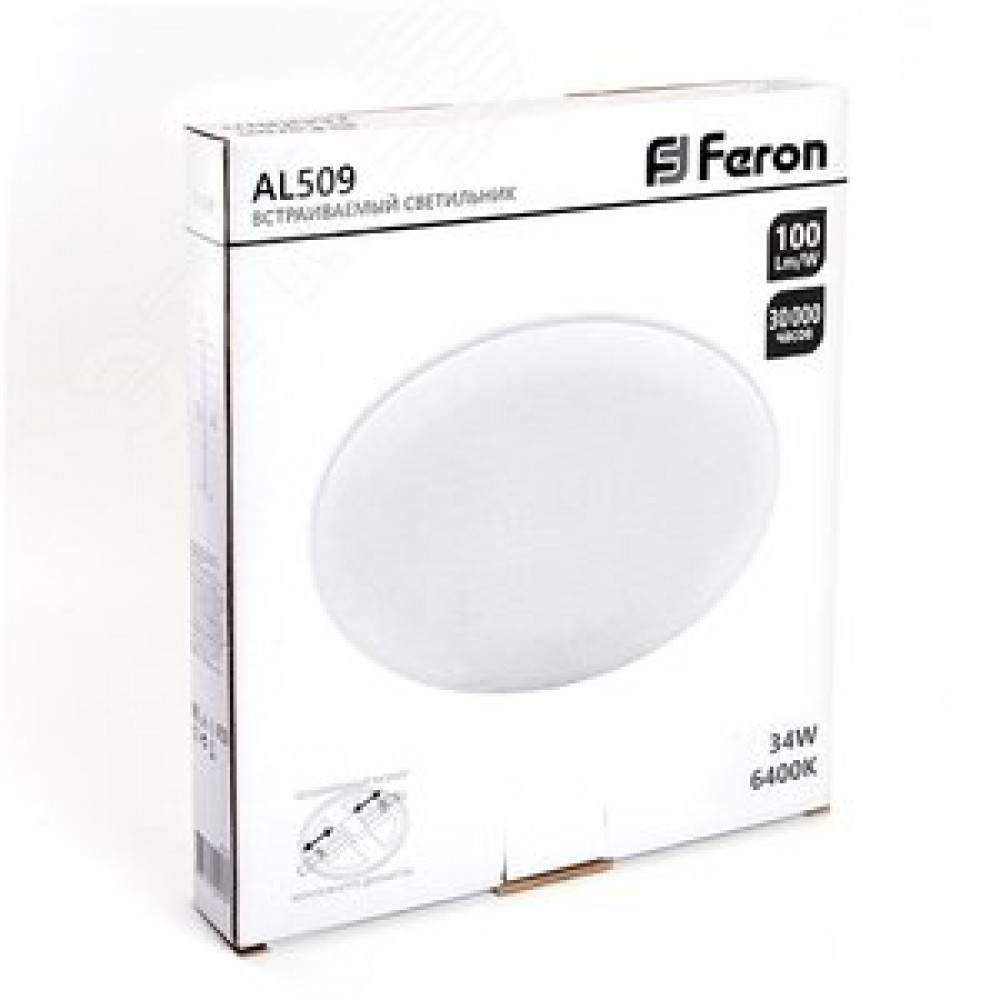 Технические характеристики Светильник светодиодный ДВО-34w 6400К 3400Лм slim белый с регулируемым монтажным диаметром (до 210мм)