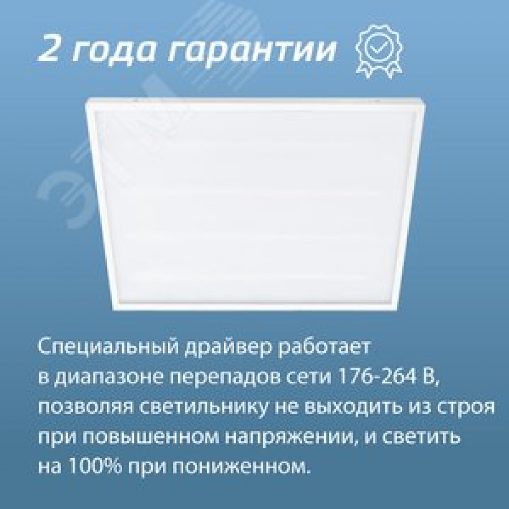 Технические характеристики Светильник светодиодный ДВО-36Вт 595х595 4000К 3100 Лм опал IP20