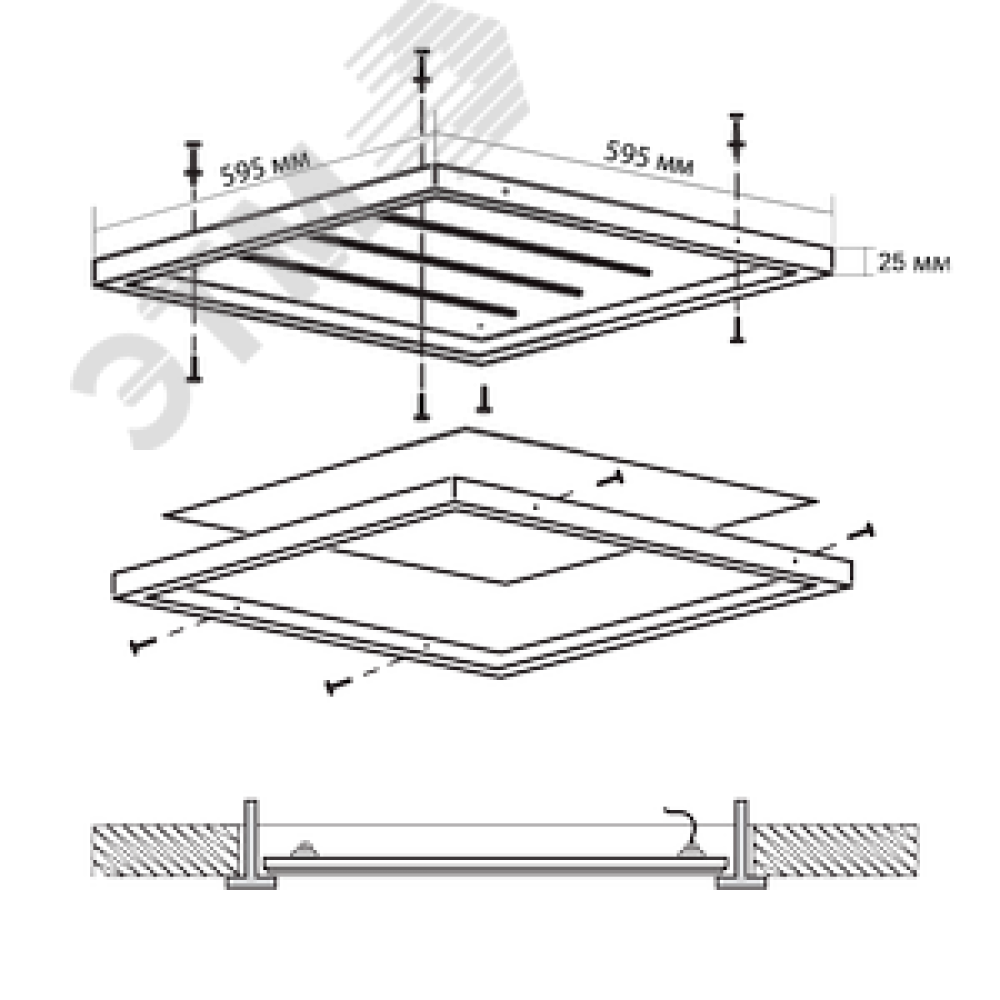 Технические характеристики Светильник светодиодный ДВО-40w 4000K 595х595 3400Лм Ra90 с БАП IP40