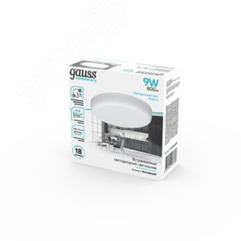 Технические характеристики Светильник светодиодный ДВО 9 Вт 800 лм 4000К AC 220В IP20 круг D85х29мм монт d75мм Алюминий безрамочный Elementary