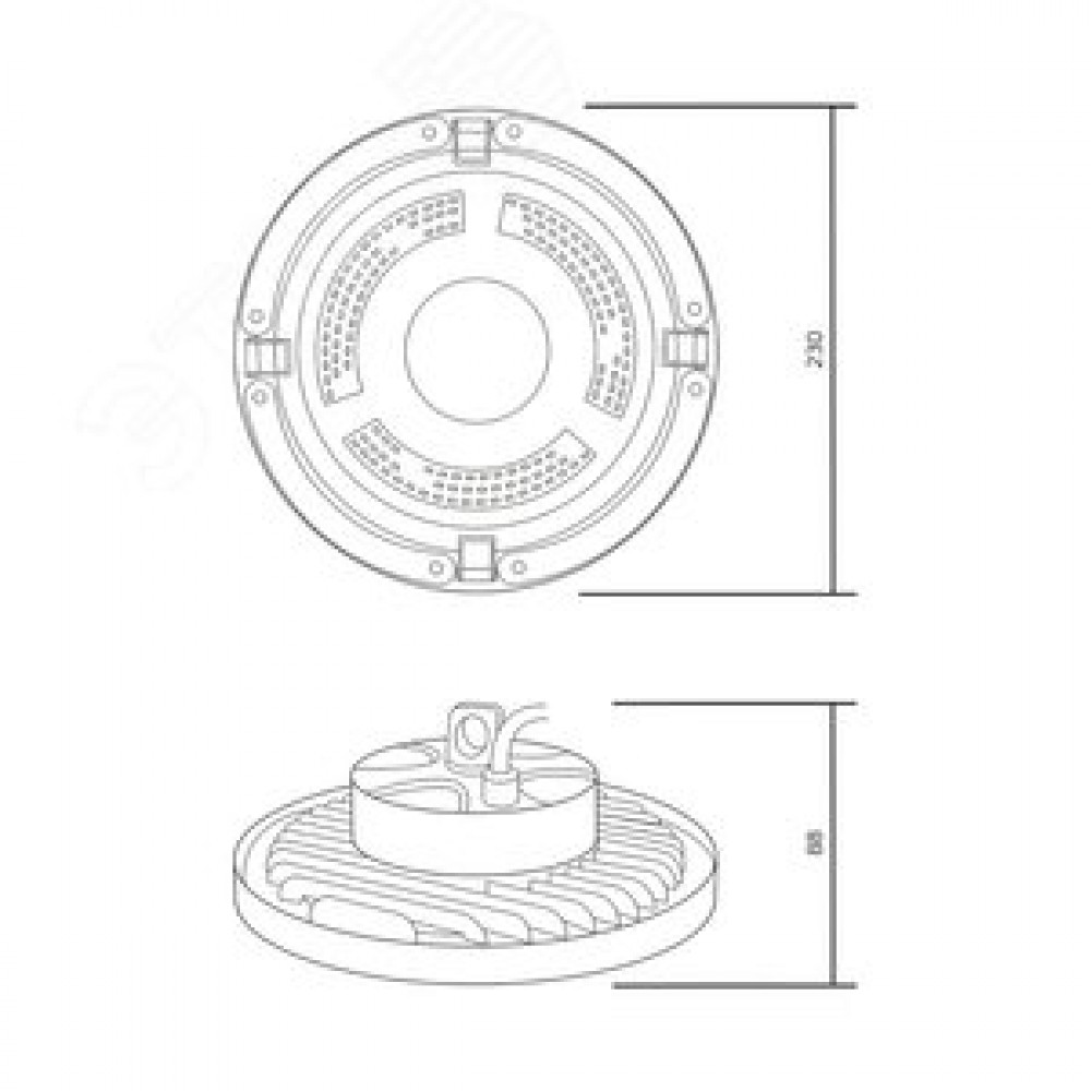 Технические характеристики Светильник светодиодный промышленный ДСП 100 Вт 12000 лм 5000К AC 220В IP65 D230х88мм стекло угол 120 грд UFO