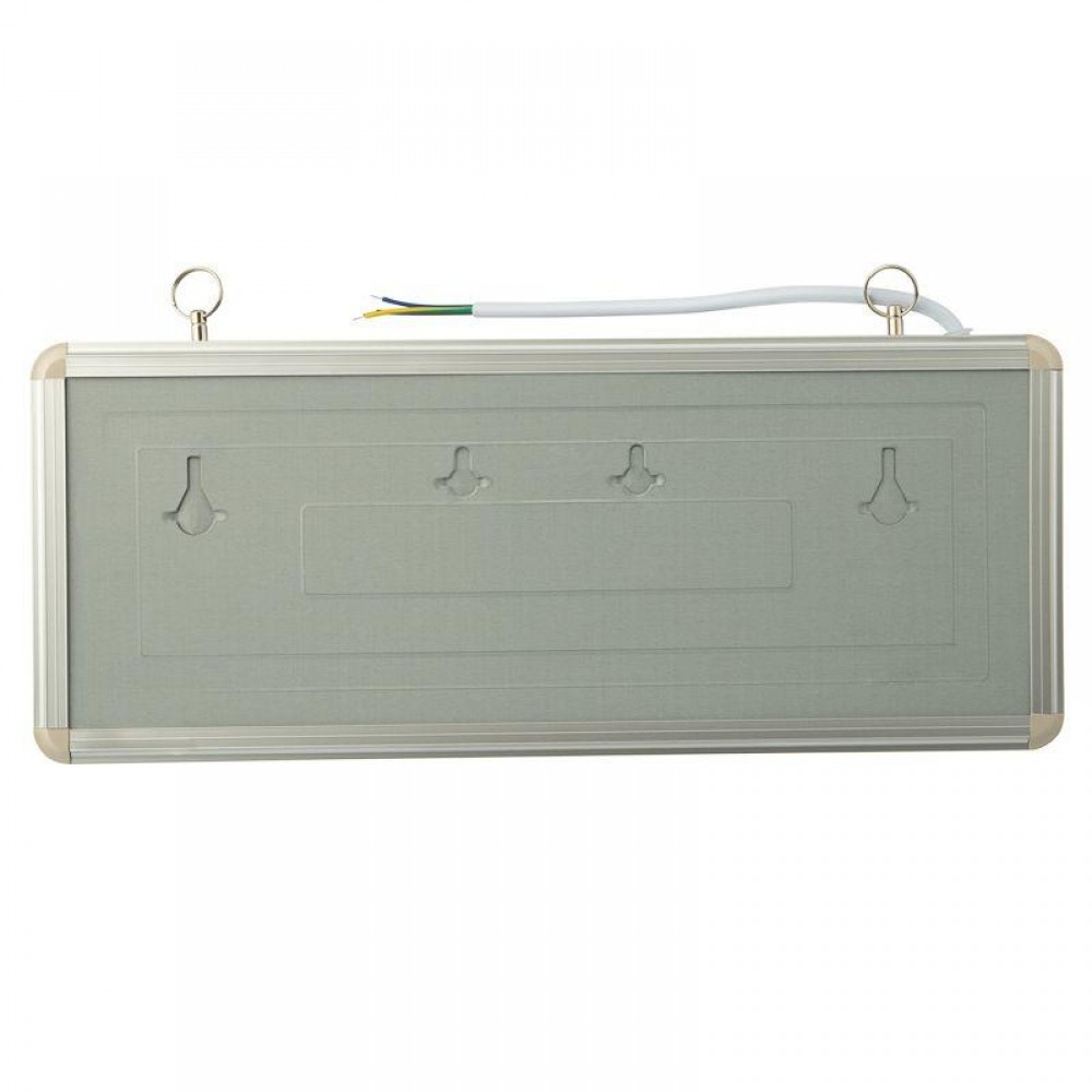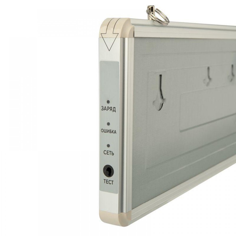 Источником света в светильнике является светодиодная линейка, использование которой дает преимущество в сравнении с применяемыми в настоящее время люминесцентными лампами и лампами накаливания. Светильник имеет два варианта крепления: настенное и потолочное. Световые указатели имеют встроенный аккумулятор и сохраняют работоспособность при отсутствии напряжения в течение 90 минут.
