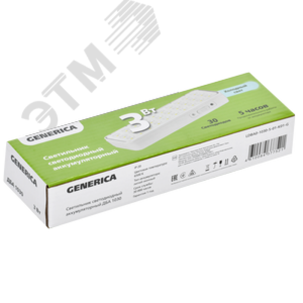 Технические характеристики Светильник светодиодный аккумуляторный ДБА 1030 непостоянного действия 30LED 5ч 3 Вт GENERICA