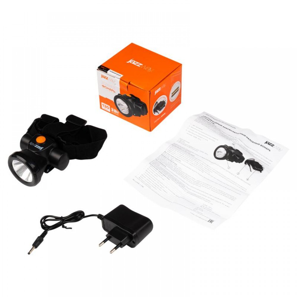 Фонарь аккумуляторный налобный AccuH8-L3W 3Вт IP20 2 режима: яркий 4ч/экономичн. 15ч аккум. 2А.ч регулир. угол наклона JazzWay 5024571