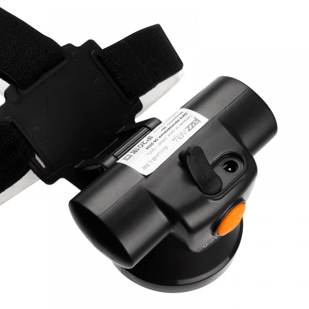 Фонарь аккумуляторный налобный AccuH1-L5WZ-og zoom LED 5Вт + 2хRED SMD IP54 5 режимов: 100проц. 180лм 3.5ч/50проц. 110лм 5.5ч/30проц. 65лм 15ч/красн. 28ч/мигающ. красн. 12ч аккум. 0.8А.ч управл. жестами черн./оранж. JazzWay 5036611