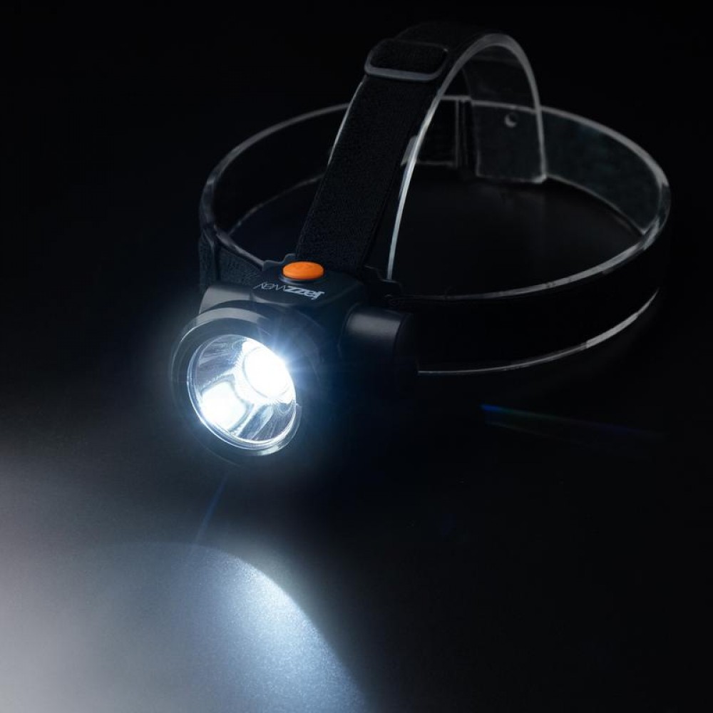 На складе Код товара: 5036611 Фонарь аккумуляторный налобный AccuH1-L5WZ-og zoom LED 5Вт + 2хRED SMD IP54 5 режимов: 100проц. 180лм 3.5ч/50проц. 110лм 5.5ч/30проц. 65лм 15ч/красн. 28ч/мигающ. красн. 12ч аккум. 0.8А.ч управл. жестами черн./оранж. JazzWay 5036611