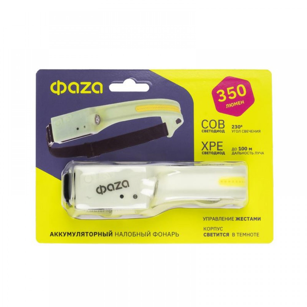 Фонарь аккумуляторный налобный ФАZА AccuFH3-L3W/L3W-GLOW 3Вт COB+3Вт XPE (5режимов упраление жестами) IP44 ФАZА 5061729