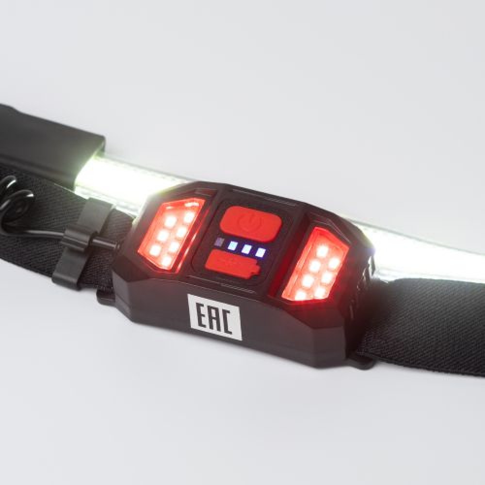 Светодиодный налобный фонарь ЭРА GA-807 "Кибер" работает от встроенного аккумулятора и удобно подзаряжается от USB-кабеля, поставляемого в комплекте. Мощность фонарика - 5 Вт. Это необычная модель налобника 2 в 1. Для создания сверхъяркого качественного освещения применены светодиоды COB - "мультикристалл на плате". Гибкая светодиодная матрица-лента занимает всю лобную часть фонаря и создает качественный заливающий свет высокой яркости. При необходимости яркость света можно снизить на 50%, переключив режим.
