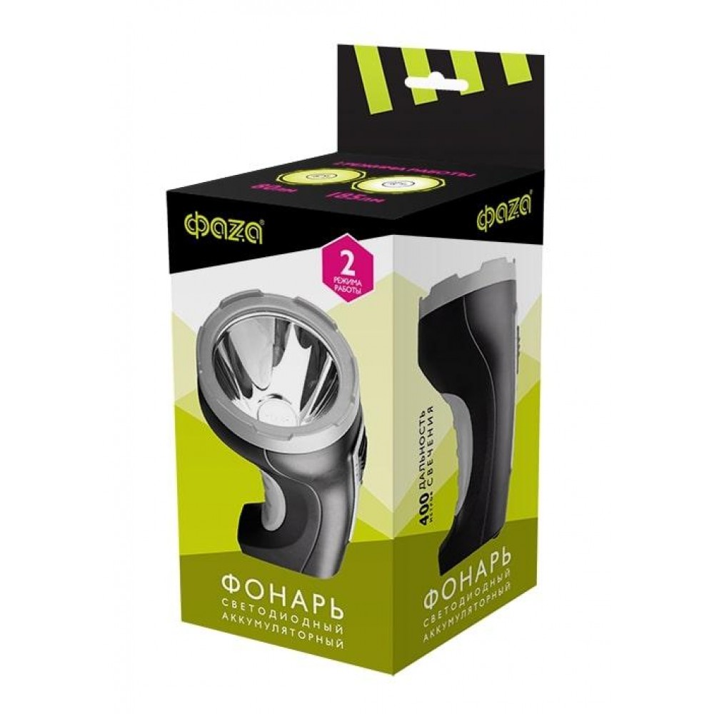 Технические характеристики Фонарь аккумуляторный ручной AccuF2-L5W-bk SMD 5Вт 185лм IP20 2 режима: яркий/эконом аккум. 1.6А.ч выдвижная вилка индикатор зарядки ремешок черн. ФАZА 2857170