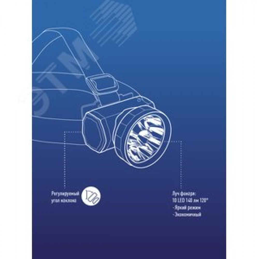 Технические характеристики Фонарь налобный аккумуляторный, 10 LED, аккумулятор 3 АА, 140 Lm, 12 часов