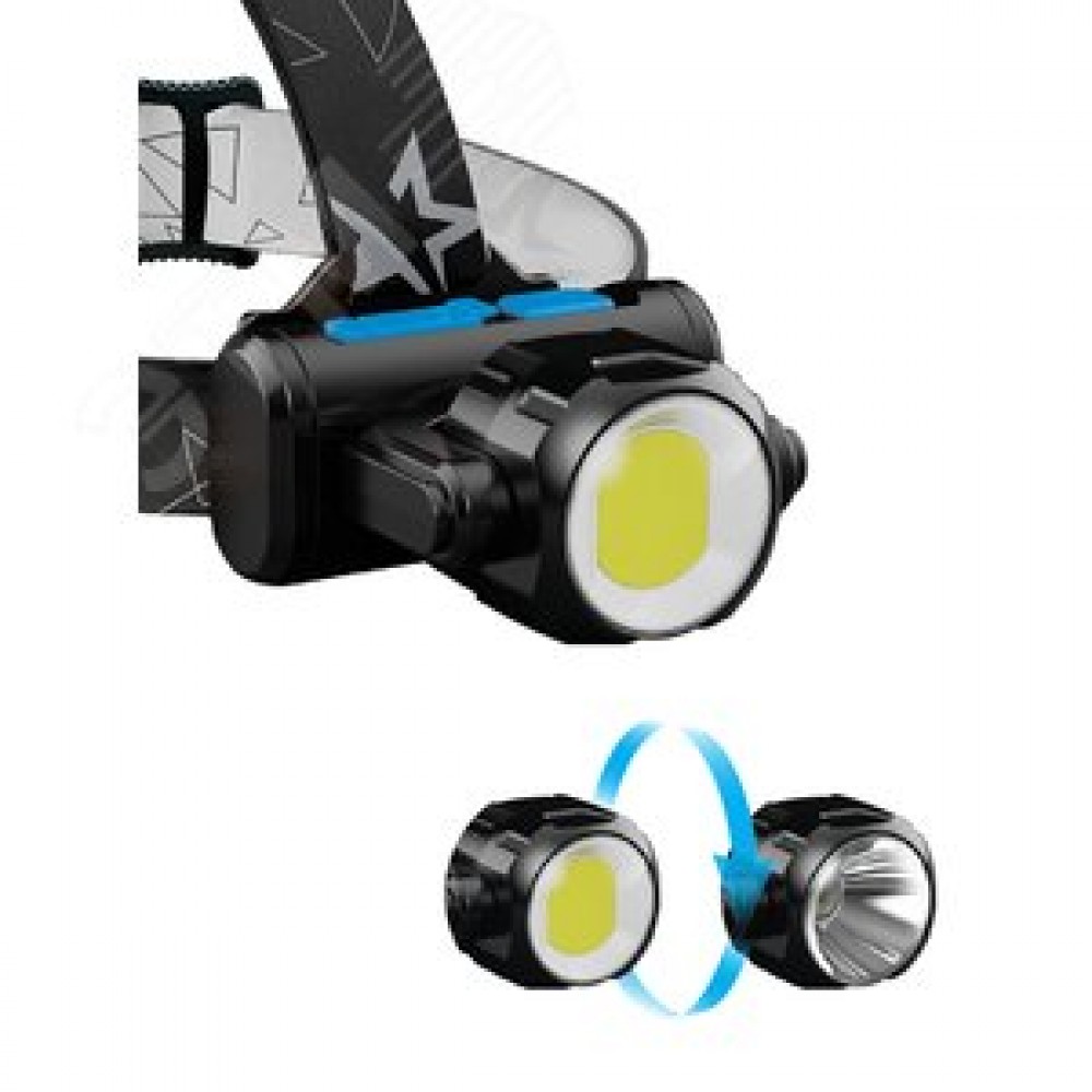 Фонарь налобный аккумуляторный, 3Вт XPE, 5Вт COB, 1200Mah LI-On, подзарядка Micro USB