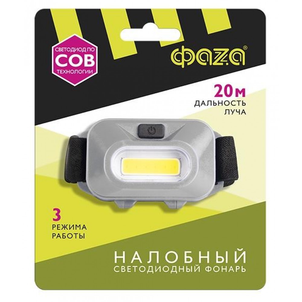 Фонарь налобный H9-L1W-gy 1Вт COB 100лм 100%/50%/мигающий 3хAAA (не входят в комплект) сер. ФАZА 5031180