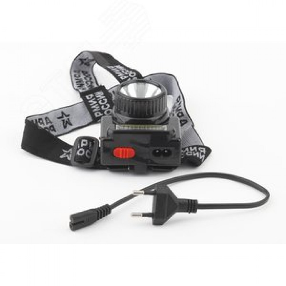 Фонарь налобный светодиодный 6Вт 176Лм IP20 SMD+COB 2 режима аккумуляторный АРМИЯ РОССИИ Гранит GA-501 черный