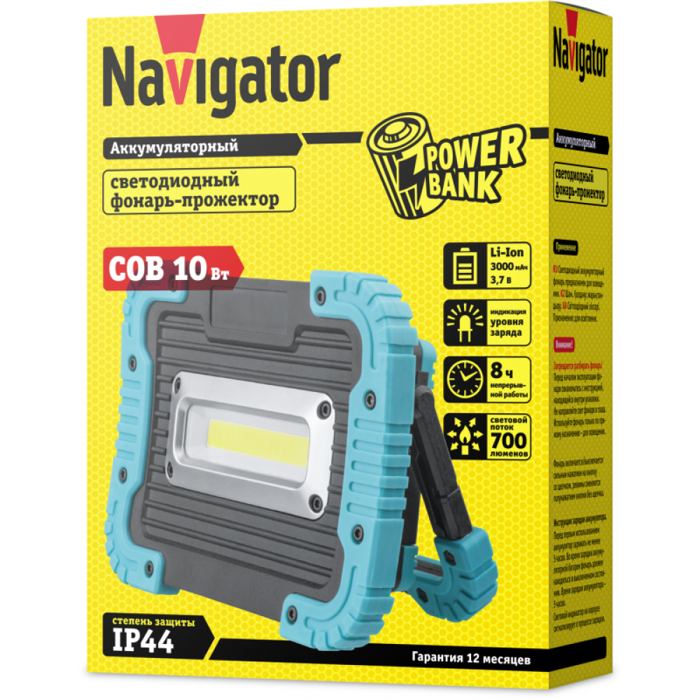 Фонарь-прожектор аккумуляторный 14 268 NPT-SP22-ACCU COB LED 10Вт 700лм аккум. 3.7В 3А.ч NAVIGATOR 14268