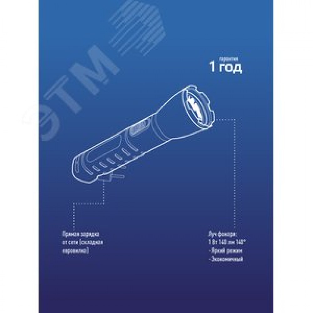Технические характеристики Фонарь ручной аккумуляторный, 1W, аккумулятор 4V 0,5Ah, 140Lm, 6 часов