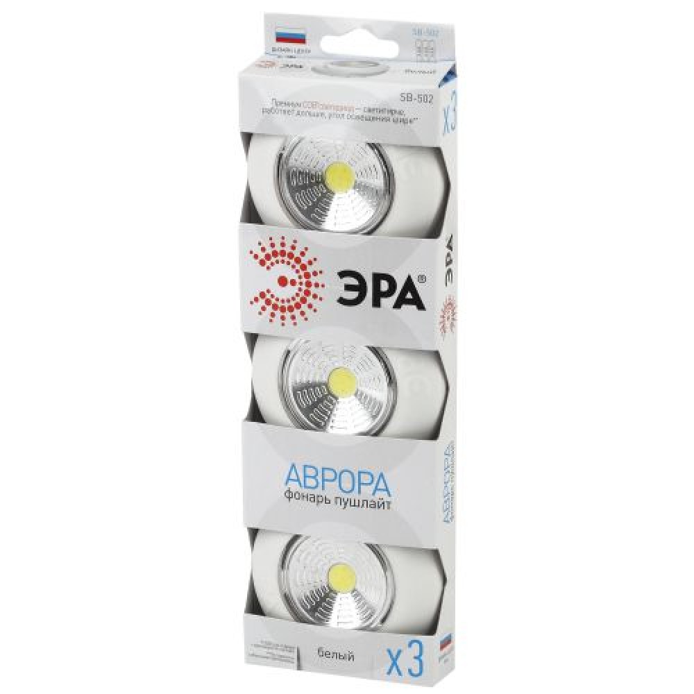Фонарь SB-502 NEW пушлайт "Аврора" COB 3хAAA бел. (уп.3шт) ЭРА Б0031041