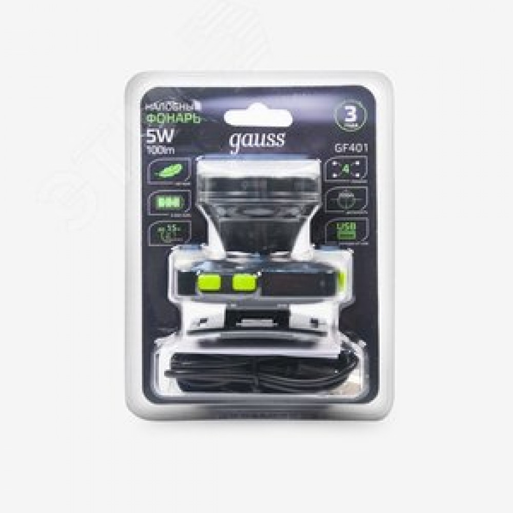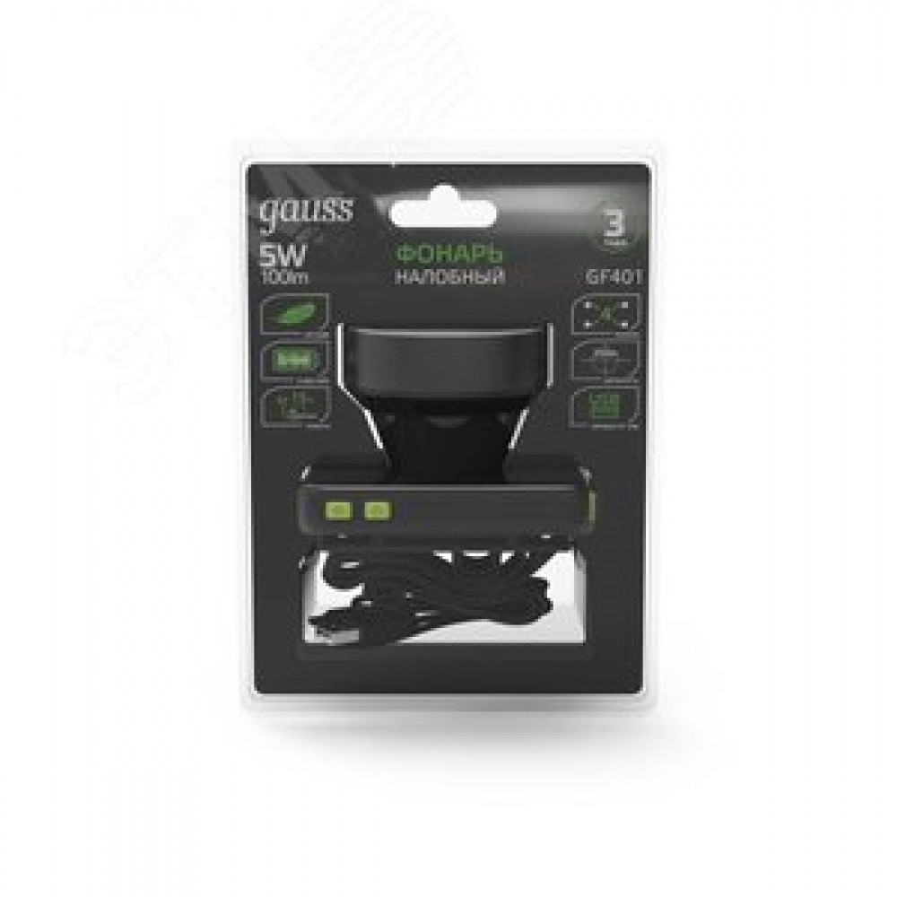 Технические характеристики Фонарь светодиодный налобный 5 Вт 100 лм черный IP64 аккумуляторныйуляторный Li-ion 3000мАч диммируемый GFL