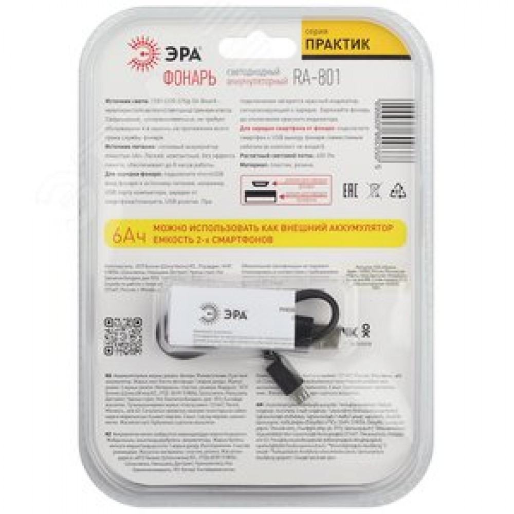 Технические характеристики Фонарь светодиодный рабочий Практик ручной аккумуляторный магнит крючок powerbank 3 режима RA-801