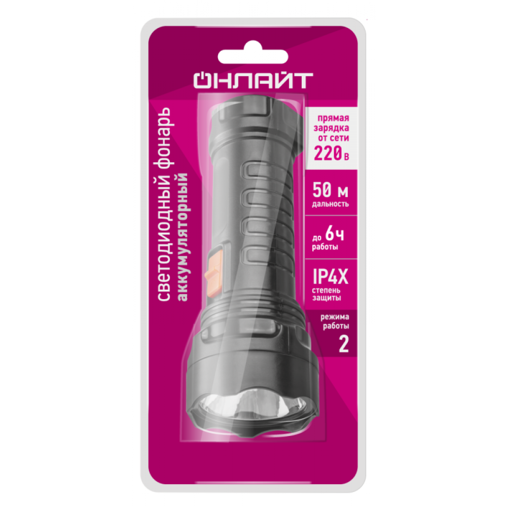 Фонарь светодиодный ручной 90 922 OPT-CP09-ACCU Lead-acid 250мА.ч 4.4В IP33 зарядка от сети ОНЛАЙТ 90922