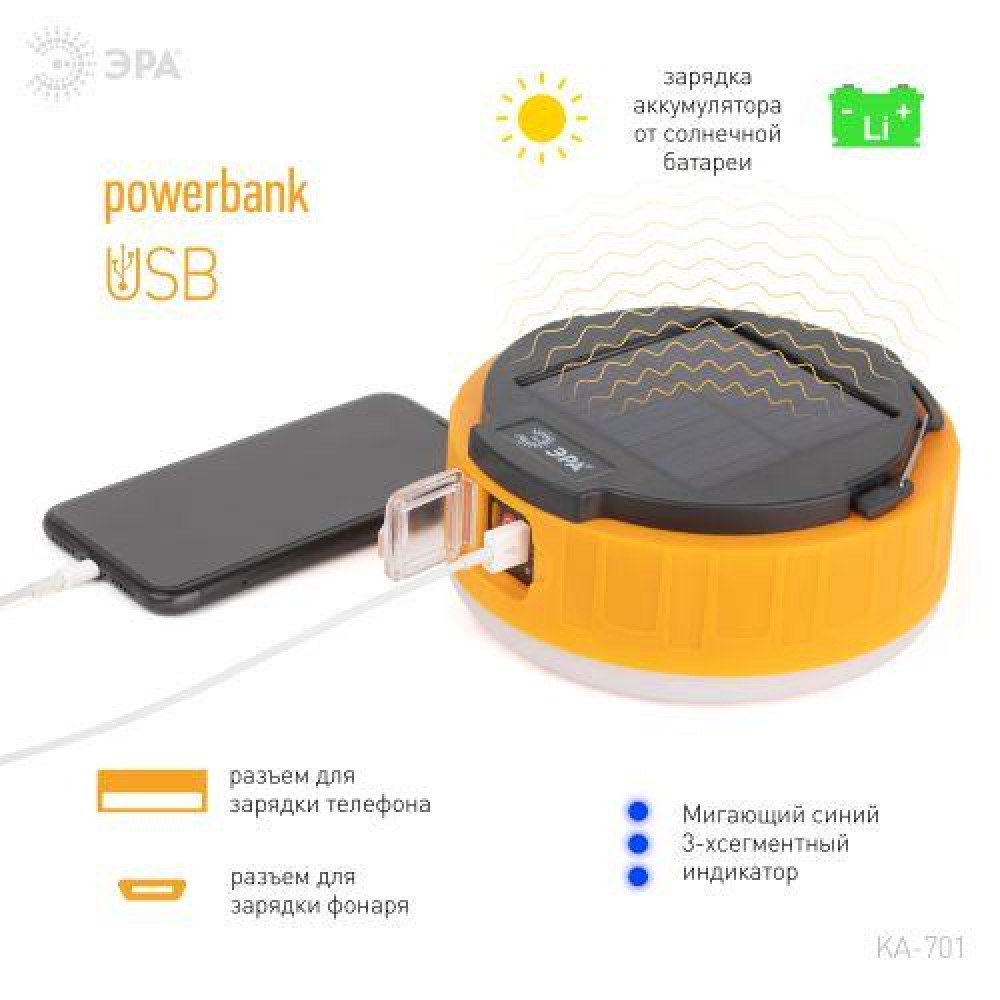 Фонарь аккумуляторный кемпинговый KA-701 Персей на солнечной батарее + ДУ Эра Б0054044