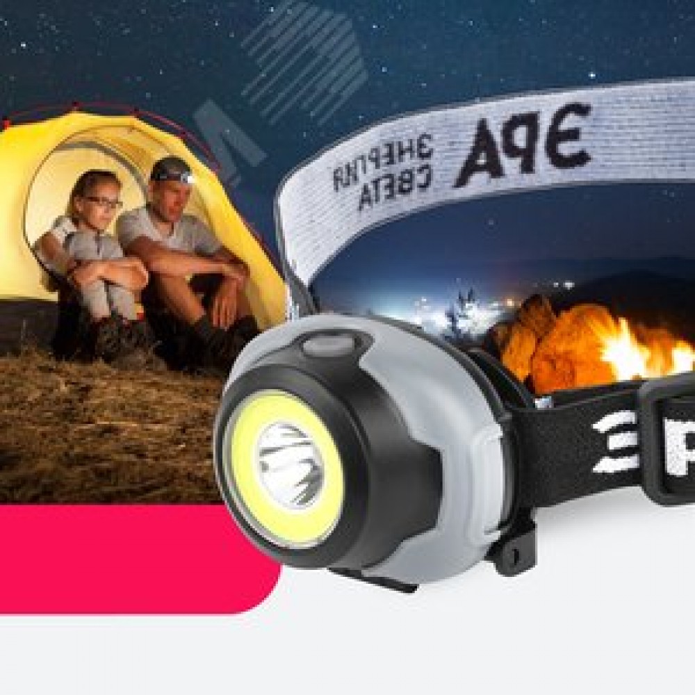 Фонарь налобный светодиодный 5Вт 310Лм IP40 SMD+COB 3 режима на батарейках 3xAAA (в комплект не входят) GB-710 Криптон