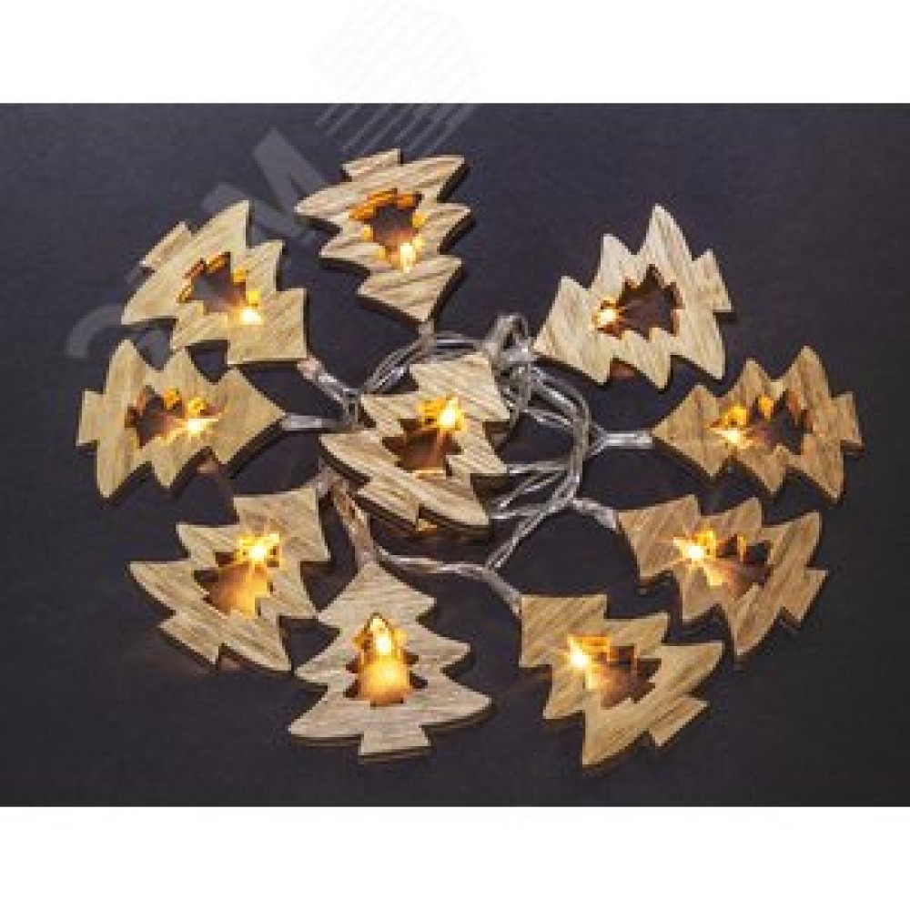 Гирлянда светодиодная новогодняя NGF-D008-10WW-2AA деревянные елочки