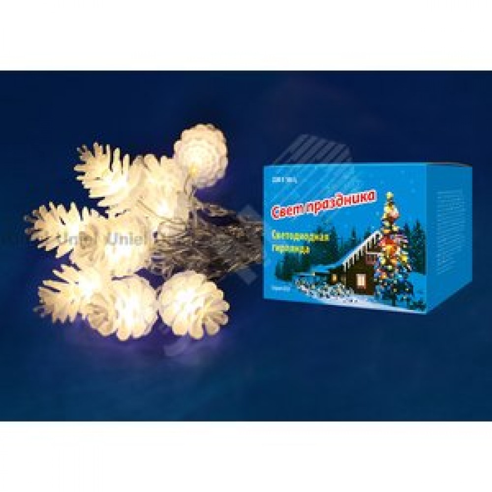 • Гирлянда светодиодная Шишки 20 светодиодов 2,8 м теплый белый IP20 прозрачный провод ULD-S0280-020/DTA WARM WHITE IP20 PINE CONES