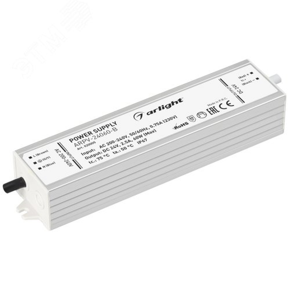 Блок питания ARPV-24060-B (24V, 2.5A, 60W) (ARL, IP67 Металл, 3 года)