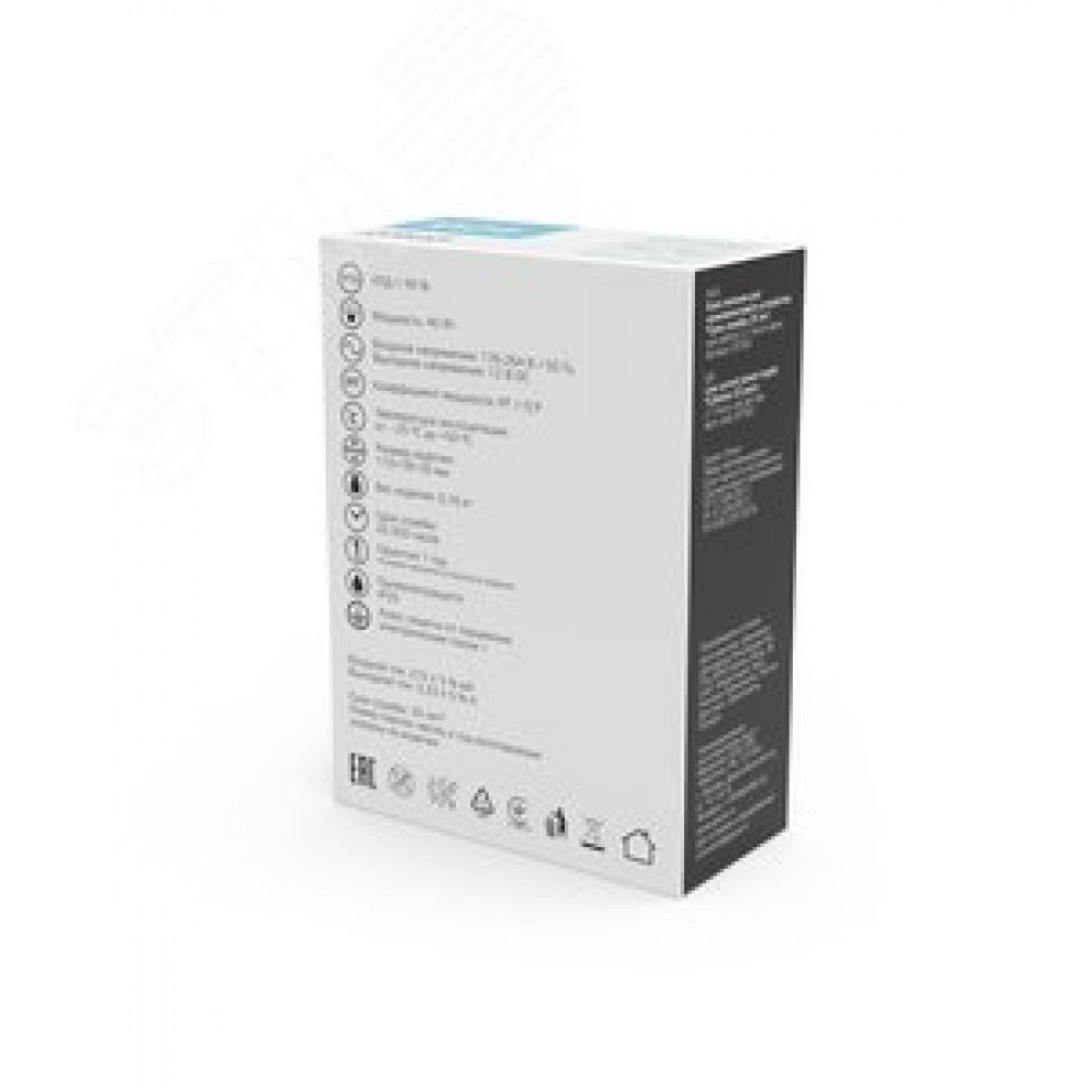 Технические характеристики Блок питания для светодиодной ленты 40 Вт AC 176-264В Uвых 12В IP20 110х78х35мм Basic