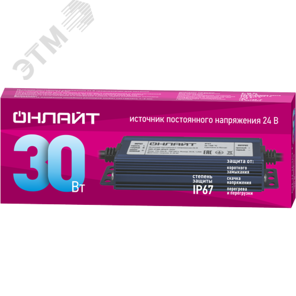 | Входное напряжение, В176-264 | Выходное напряжение, В24 | Мощность, Вт30 |