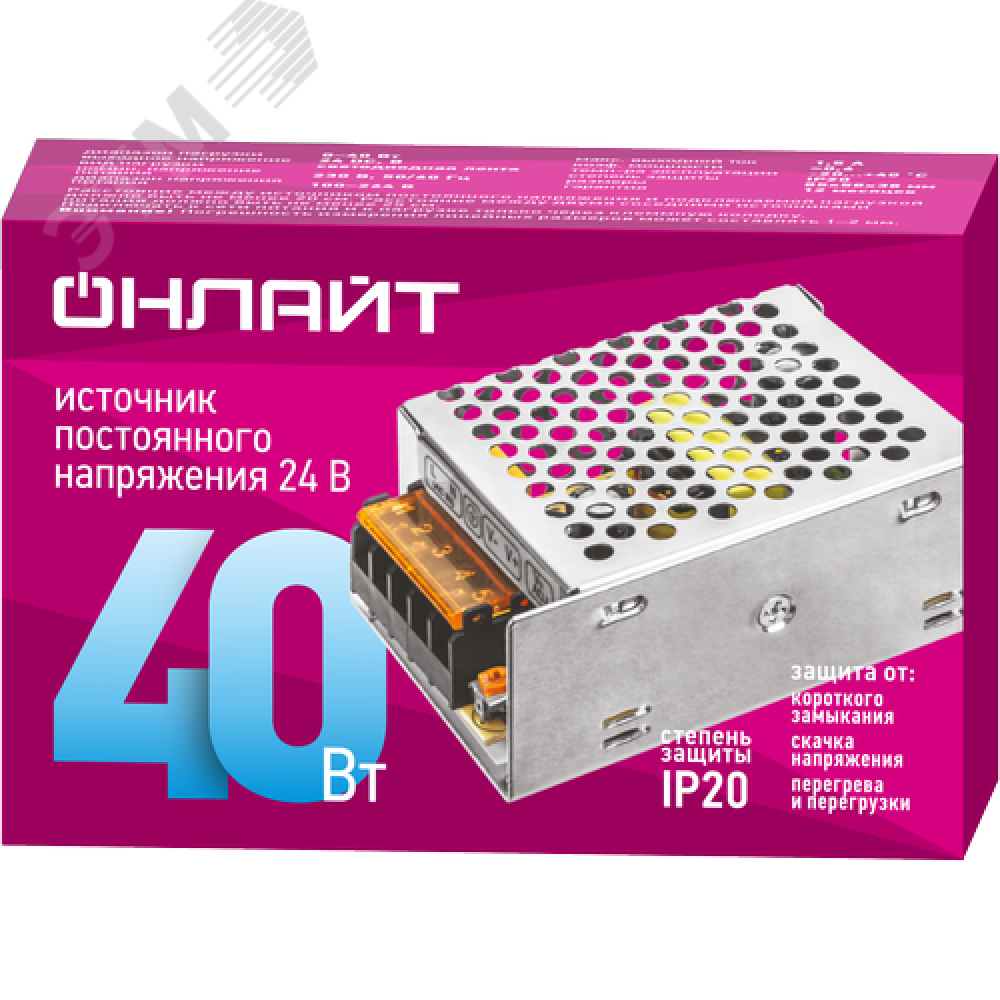 | Входное напряжение, В100-264 | Выходное напряжение, В24 | Мощность, Вт40 |