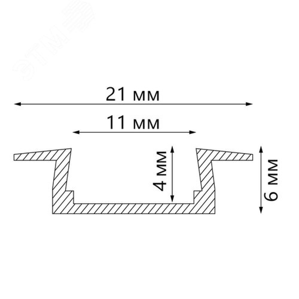 Технические характеристики Профиль встраиваемый алюминиевый 2 м матовый экран 2 заглушки для светодиодных лент