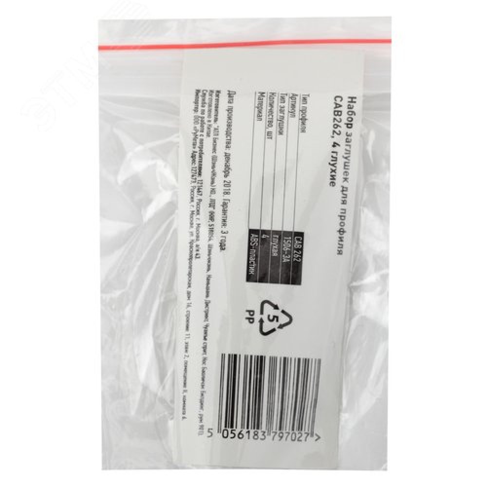 Технические характеристики Набор заглушек для профиля CAB262, 4 глухие (500/15000)