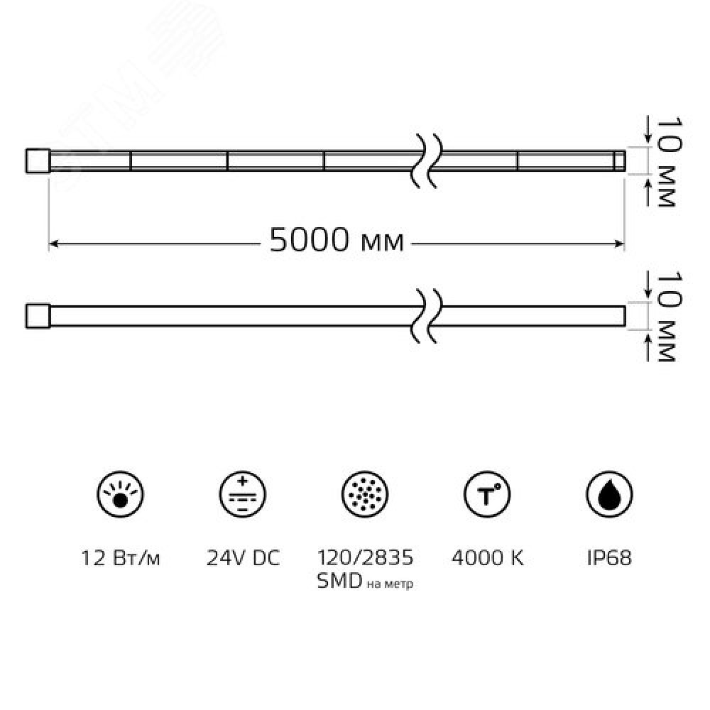 Технические характеристики Лента светодиодная 12 Вт/м DC 24В 4000К IP68 NEON термостойкая для бань и саун 900 лм/м Gauss