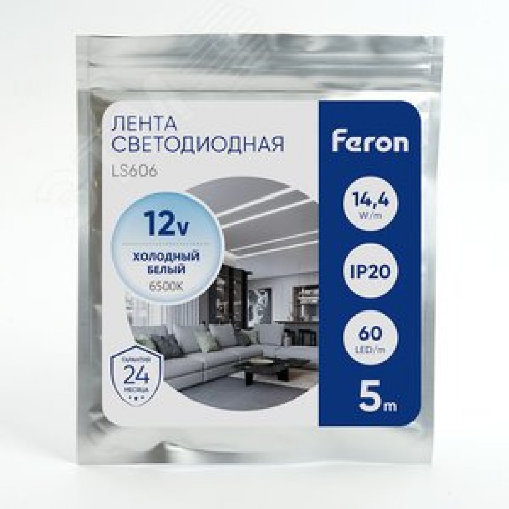 • Лента светодиодная 14.4Вт/м 12В 6500К IP20 60LED/м LS606