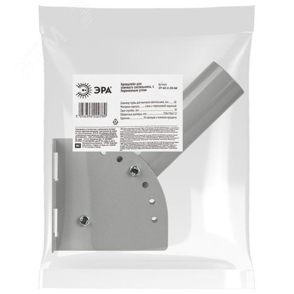 Технические характеристики Кронштейн для уличного светильника с переменным углом 250мм d48мм SPP-AC2-0-230-048