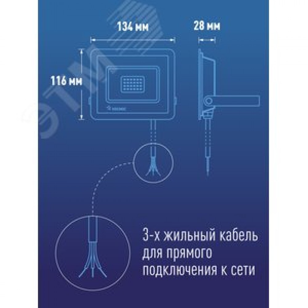 Технические характеристики Прожектор светодиодный ДО-50 Вт 6500К 4000 Лм IP65