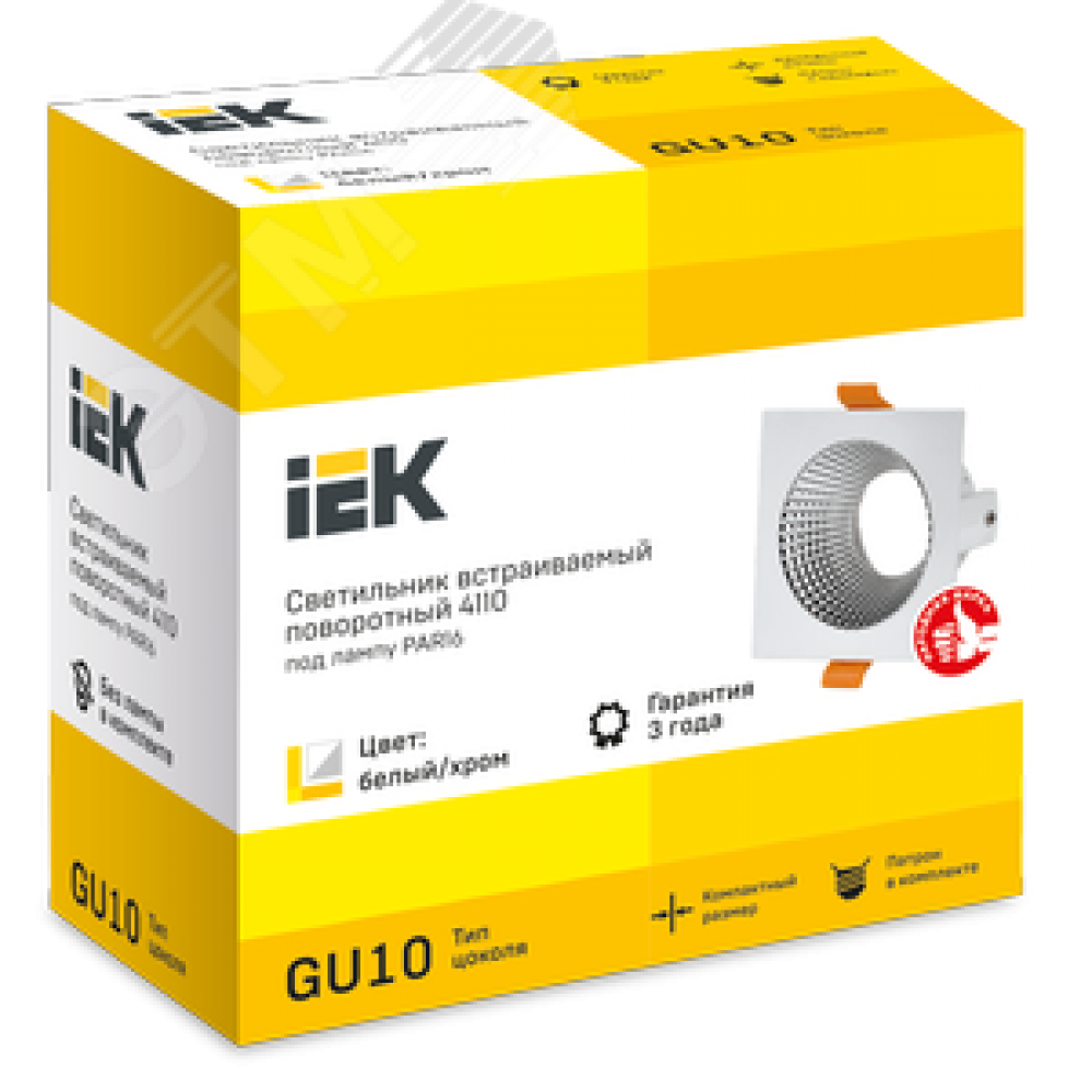 Технические характеристики Светильник 4110 встраиваемый декоративный поворотный под лампу GU10 белый/хром пластик