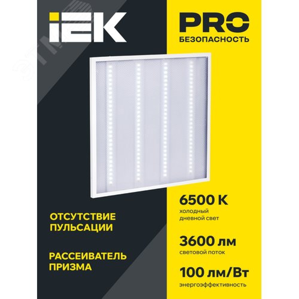 Технические характеристики Панель светодиодная светильник ДВО 6560-P 36Вт 6500К 595х595х20 призма