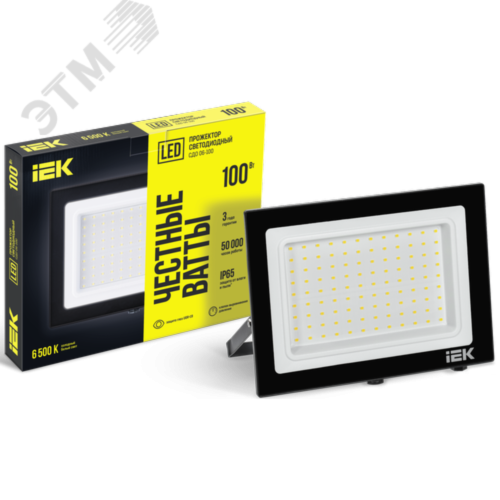 Технические характеристики Прожектор СДО 06-100 светодиодный черный IP65 6500K