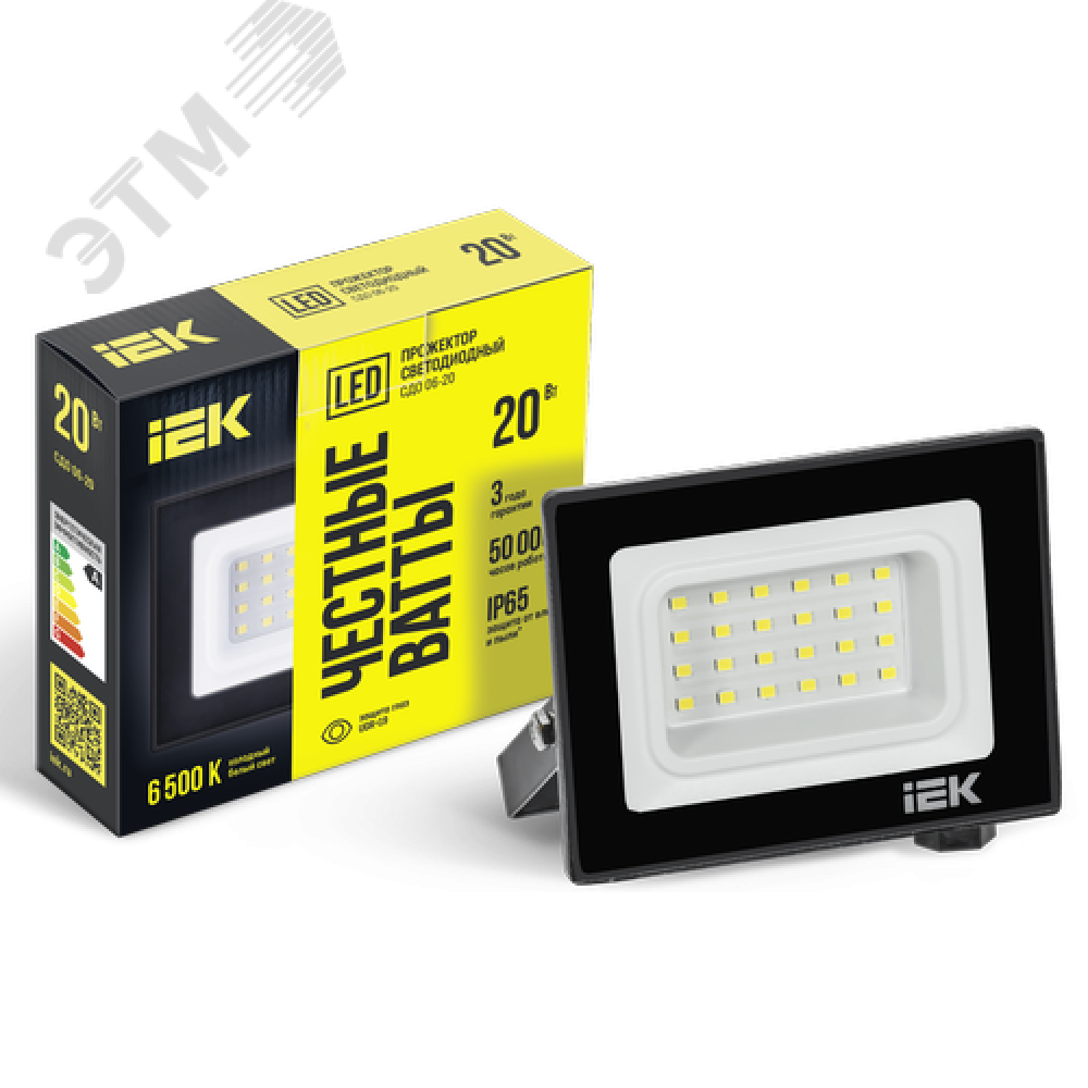 Технические характеристики Прожектор СДО 06-20 светодиодный черный IP65 6500K