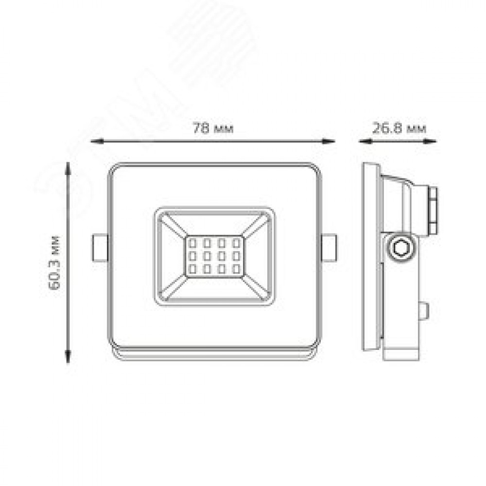 Технические характеристики Прожектор светодиодный ДО 10 Вт 820 Лм 6500К AC 220В IP65 78х60х27 мм Basic