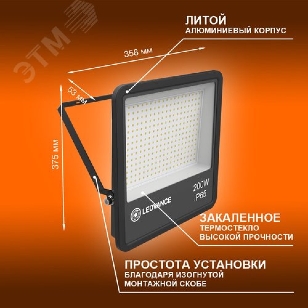• Прожектор светодиодный ДО-200 Вт 6500К 18000 Лм IP65
