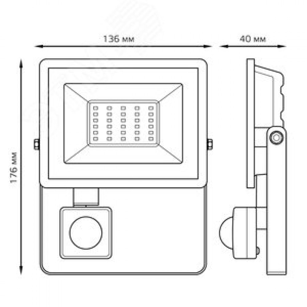 Технические характеристики Прожектор светодиодный ДО 30 Вт 2850 Лм 6500К AC 220В IP65 176х136х40мм с датчиком движения Elementary-S