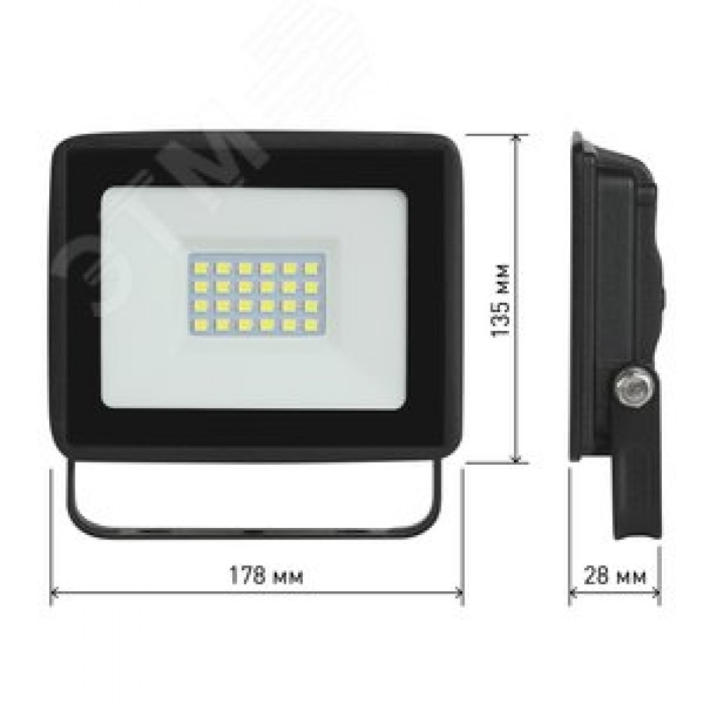 Технические характеристики Прожектор светодиодный ДО-30 Вт 6500К 2400 Лм IP65 черный 30w холодный 200-240В LPR-023-0-65K-030